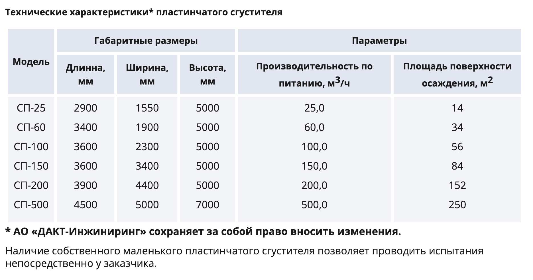 Применение Пластинчатые (тонкослойные, ламельные) сгустители АО «ДАКТ-Инжиниринг» позволяют увеличить производительность на еденицу занимаемой площади в 5-10 раз по сравнению с радиальными сгустителями.